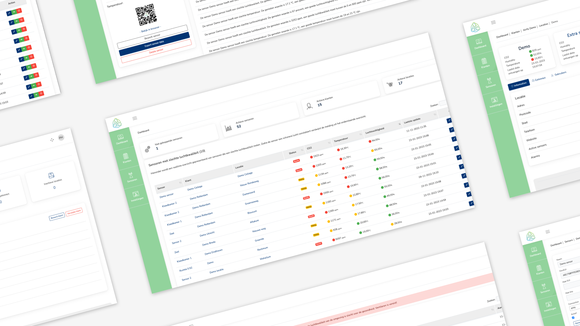 Airify beheert klanten en sensoren centraal, terwijl klanten hun eigen omgeving en huisstijl krijgen voor overzicht en personalisatie.