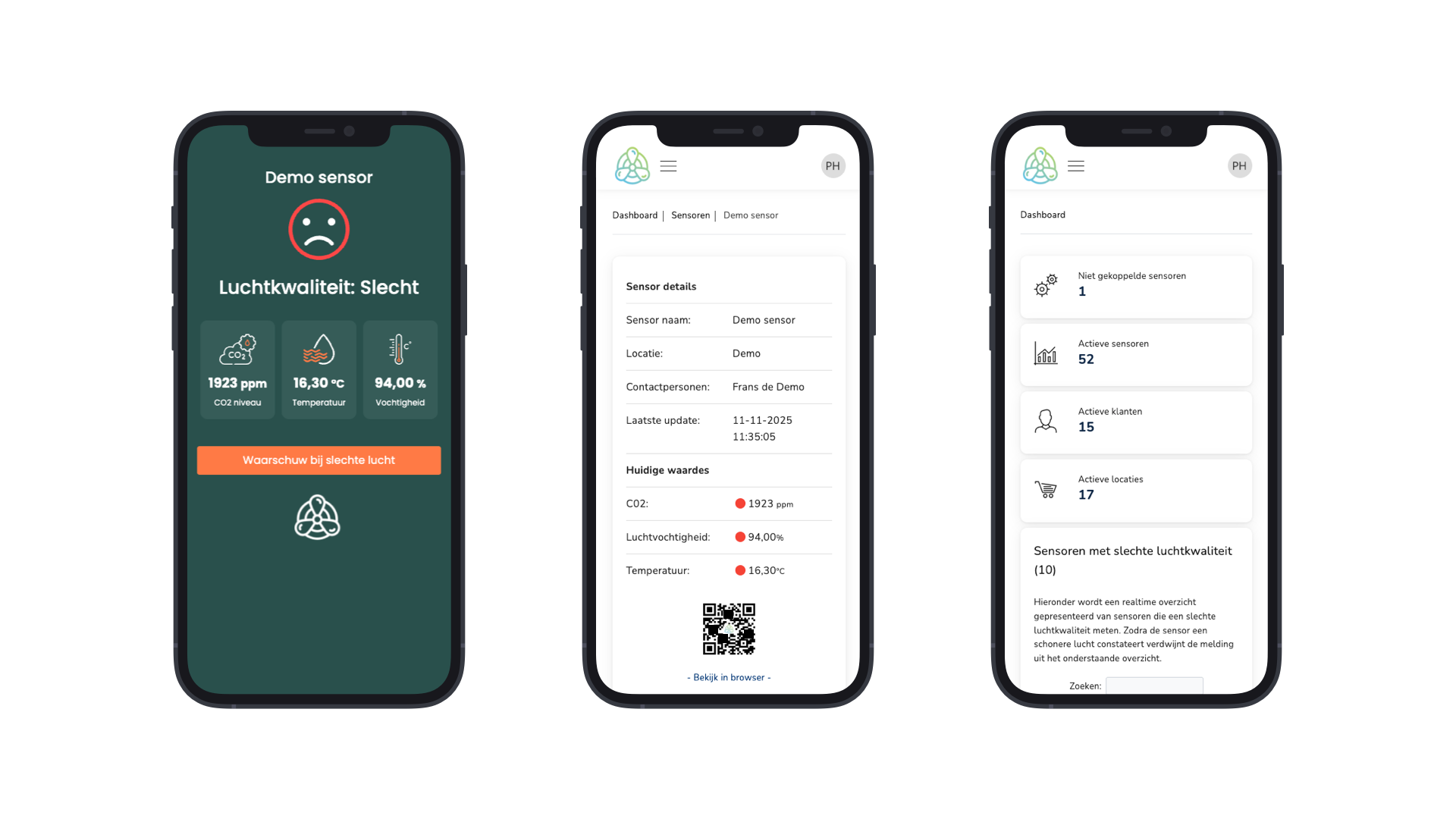 Airify maakt luchtkwaliteit meetbaar en beheersbaar met een eigen dashboard waarin gebruikers, locaties en sensoren overzichtelijk samenkomen.